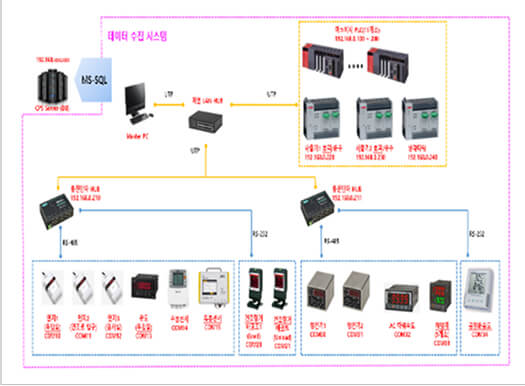 각 단위설비 ↔ 데이터 수집 서버 간 데이터 네트워크 구축 (HardWiring)