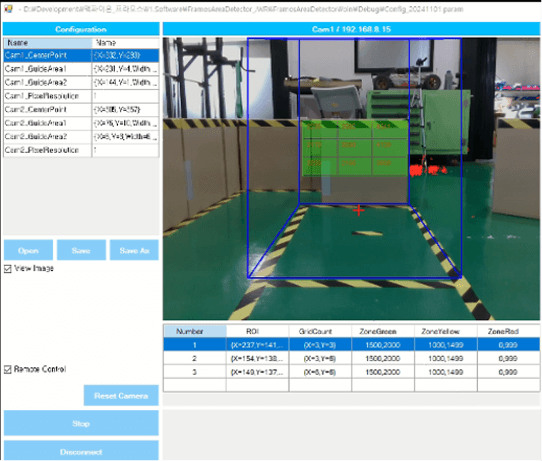 이동로봇의 작업중 안전감지범위 를 위한 영상처리 I/F 소프트웨어