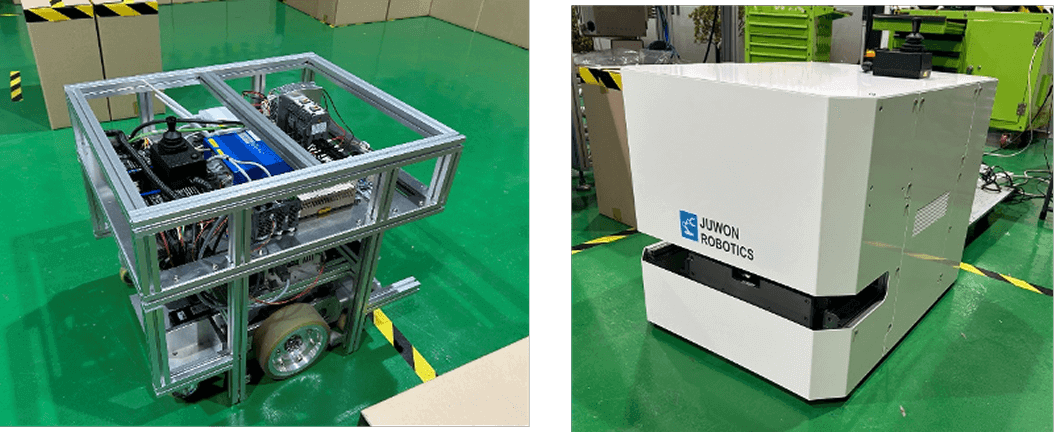 중/소규모 제조산업현장에 적용이 가능한 다목적 산업용 자율주행로봇 상용 주행제어기ANT Lite+(Bluebotics) 적용으로 로봇의 기술신뢰성 보장, 산업용 인터페이스 대응편리, 산업안전규정 만족